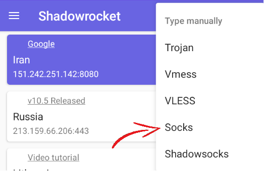 - Then select Socks5 or HTTP depending on your needs. Here I use Socks5.