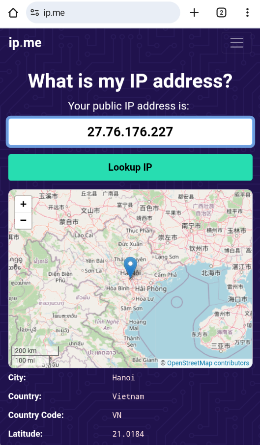 - Visit IP.me to check the result.